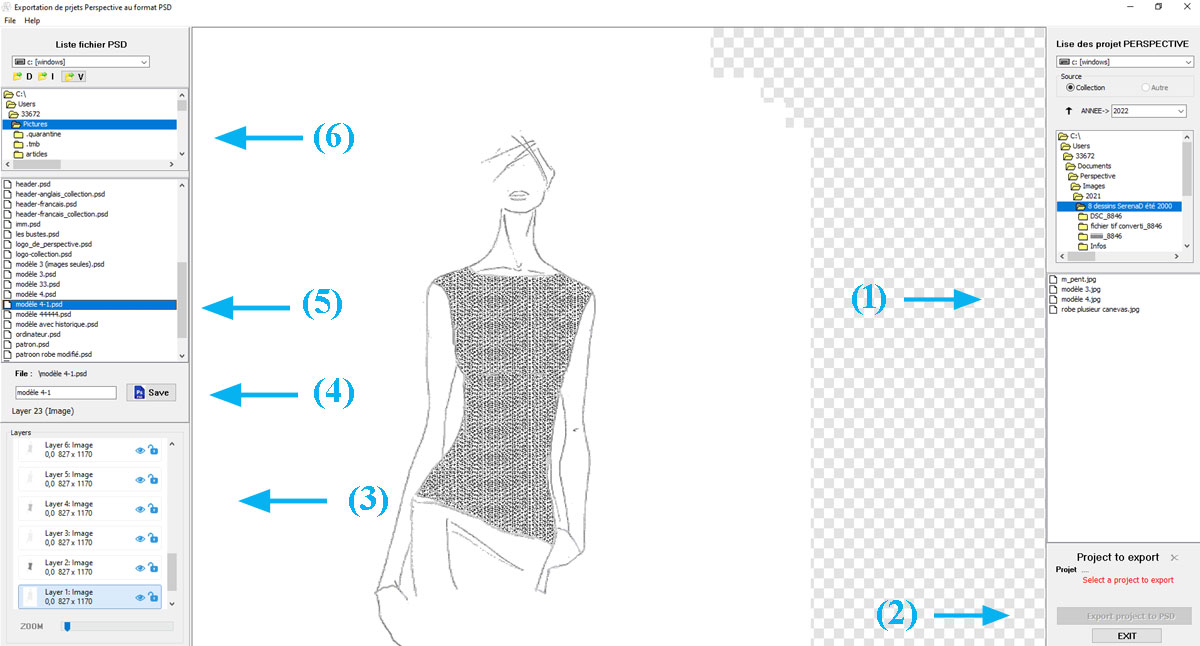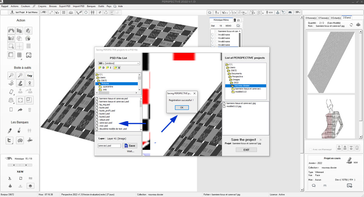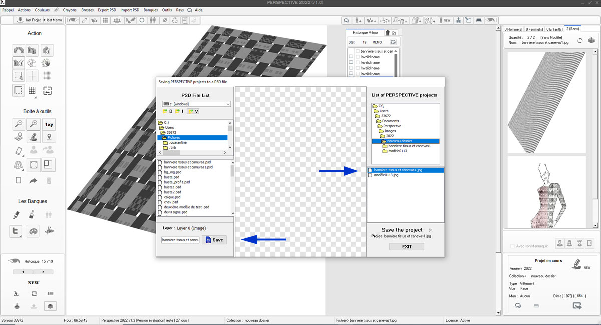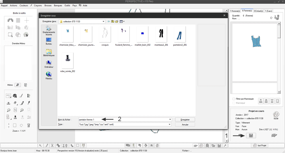 En 1 , un clique sur le bouton Sauvegarder et Perspective se chargera de le nommer selon son type (Femme_206.bmp)