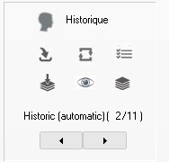 Avec les flèches gauche droite ou en cliquant sur l'item de l'image (1), on peut parcourir et afficher en cochant la case (Visuel), les images déjà créées dans le projet en cours dans une fenêtre de visualisation sans modifier l’image de la fenêtre principale. |