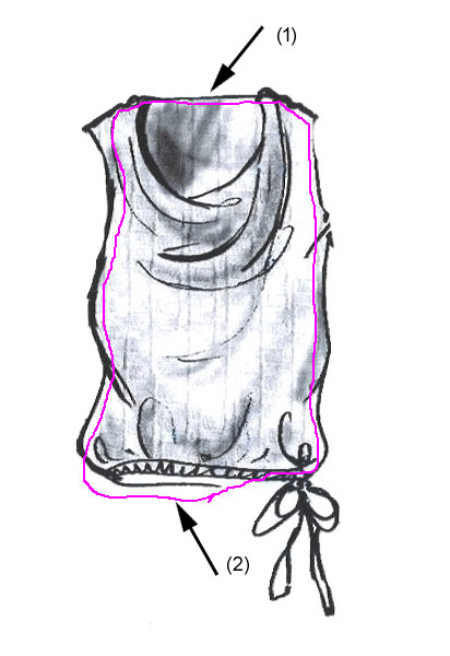 En (1) sur la partie haute du dessin, le tracé n'est pas assez haut par rapport à la partie haute du dessin se qui ne permettra pas le gonflement correcte de la partie haute du dessin.