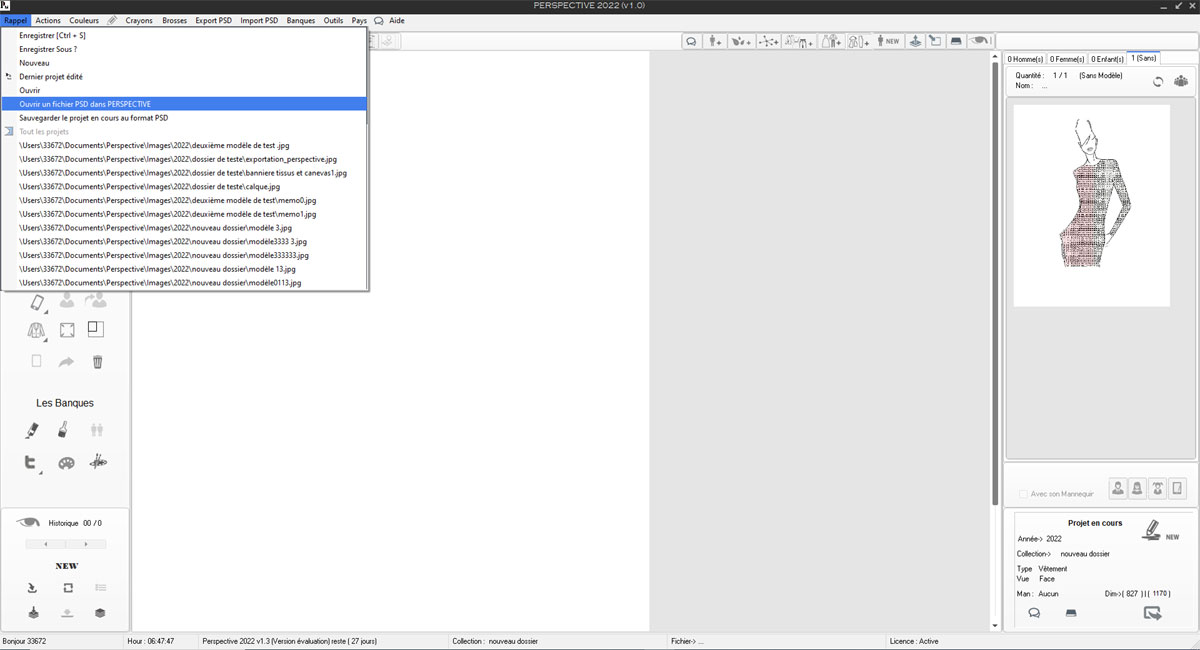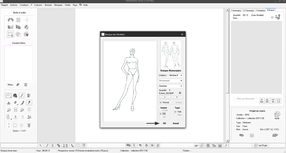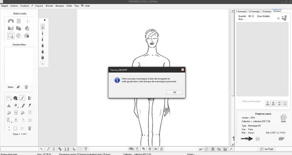 Ce mannequin sera intégré automatiquement par Perspective dans la banque personnelle des mannequin dans le groupe (mannequin Femme).