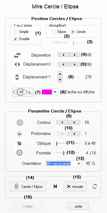 au panneau Mire Cercle / Elipse