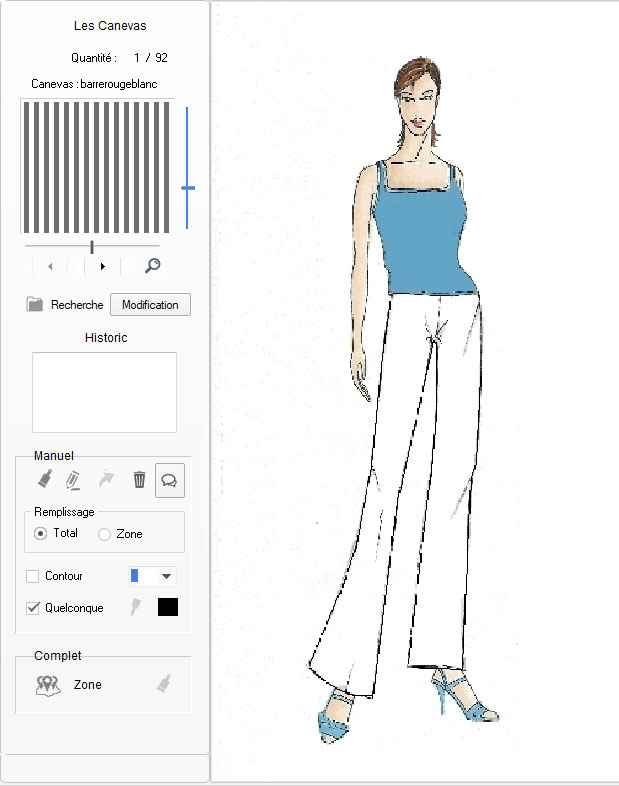 du canevas en cours. Note : suivant le paramétrage du transfert, le contour de la zone remplie peut être occultée.