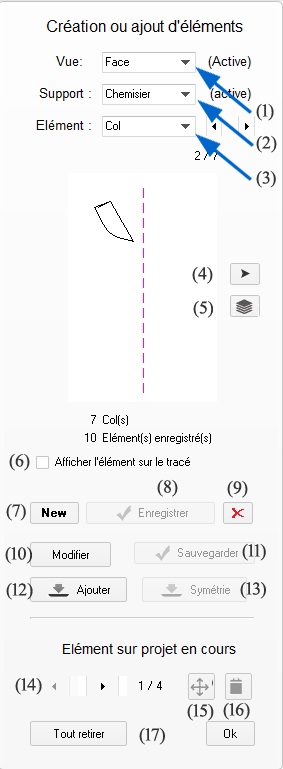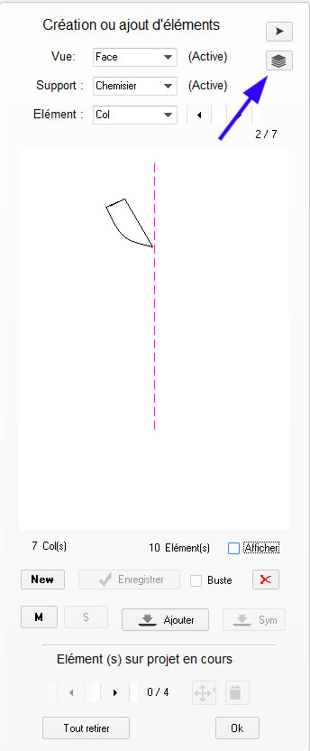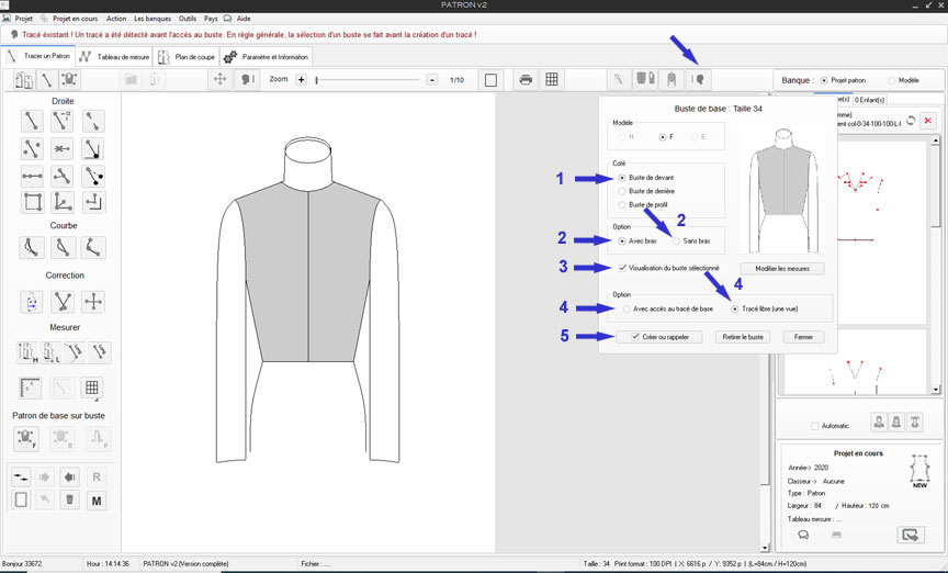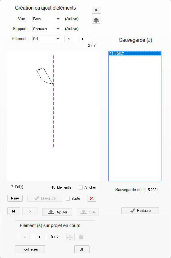 En (5) Créer ou rappeler, permet l'ajout du buste au projet en cours.