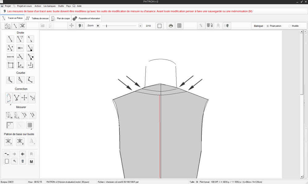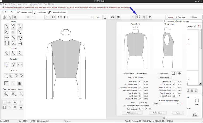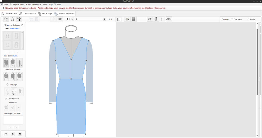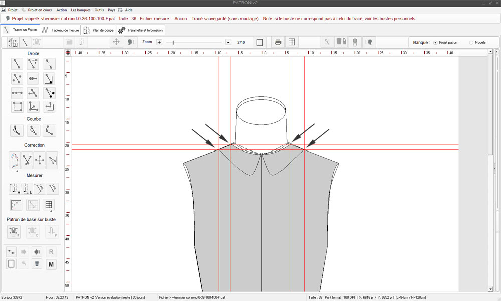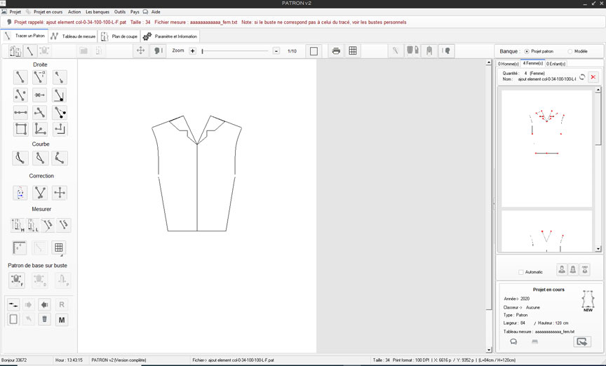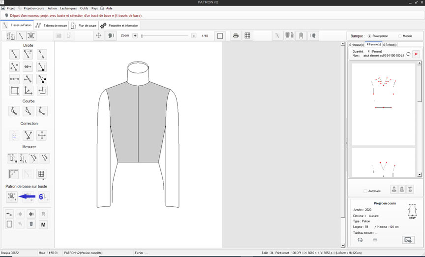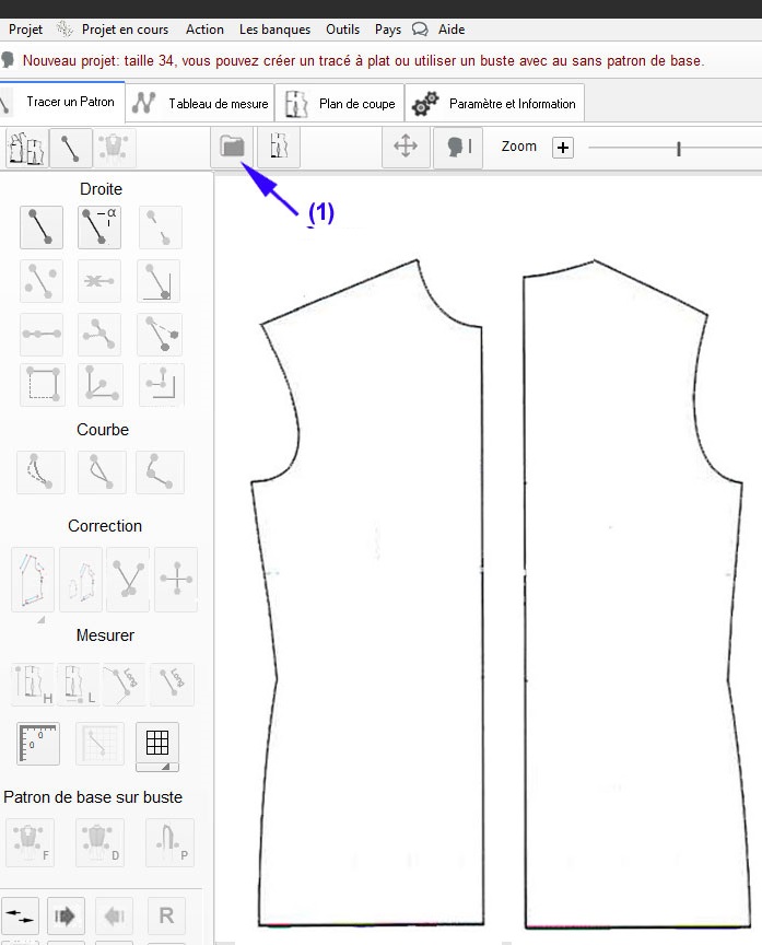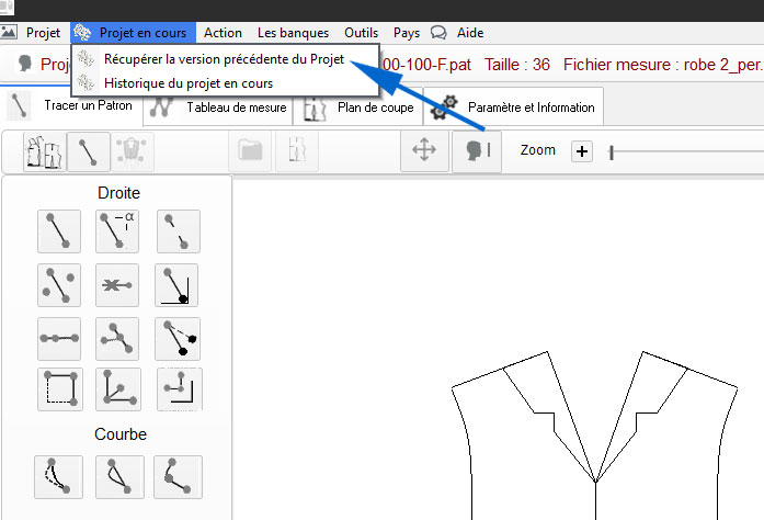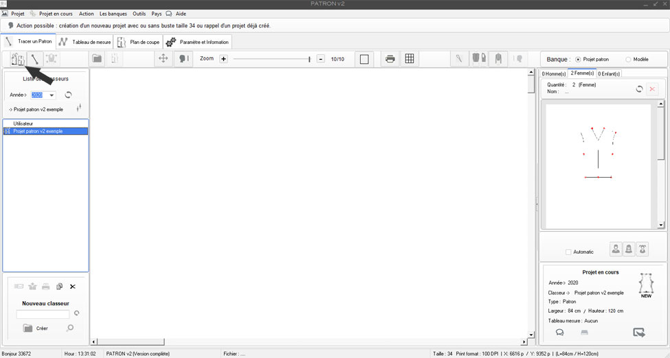 Nouveau classeur nommé: Projet patron v2 exemple, puis retour à l'outil principal de dessin