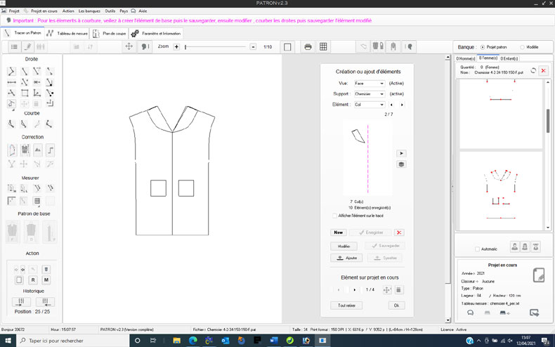 Comme point de départ, il faut définir la taille de base du patron à réaliser sachant que l’on peut être amené par la suite à devoir créer des tailles différentes.