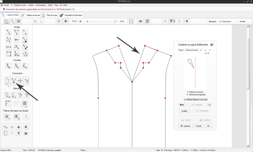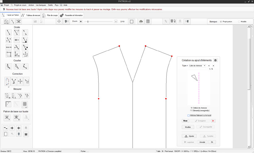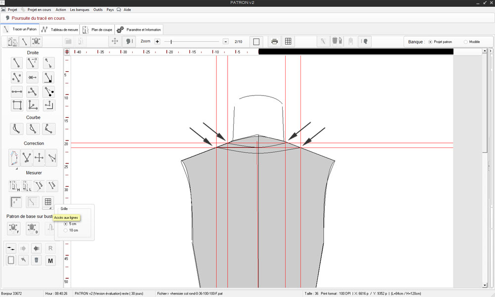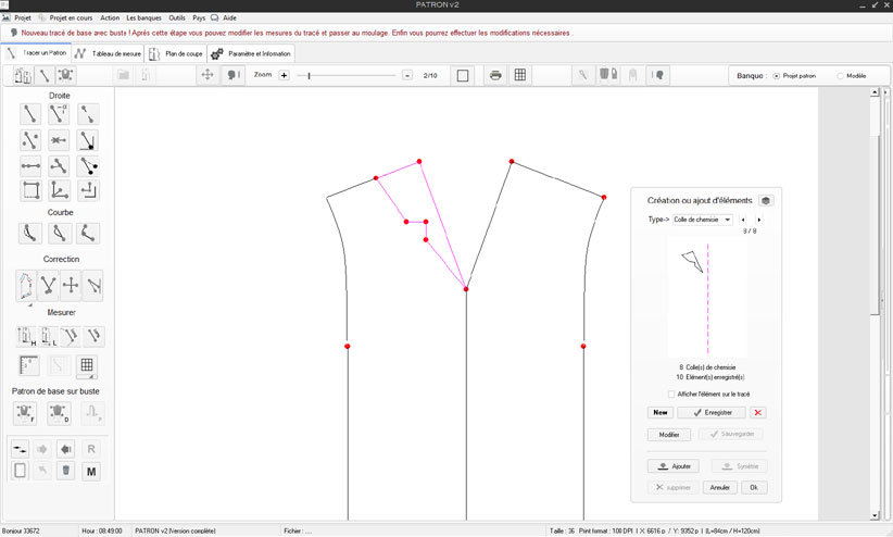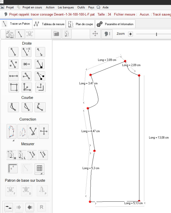 dimensions du tracé ceci avant de nommer les droites ou courbes et enfin de synchroniser les réelles mesures du tracé avec le fichier de mesure associé.4) procéder à l'isolation du contour complet du tracé du patron (voir isolation)