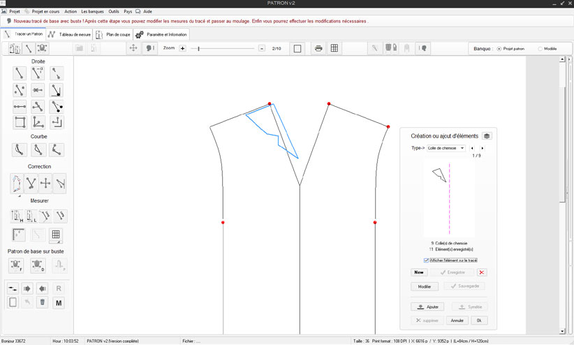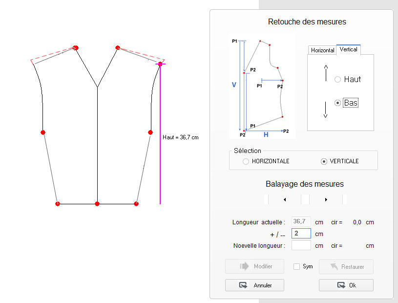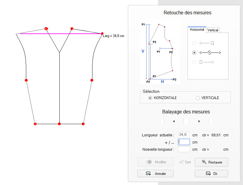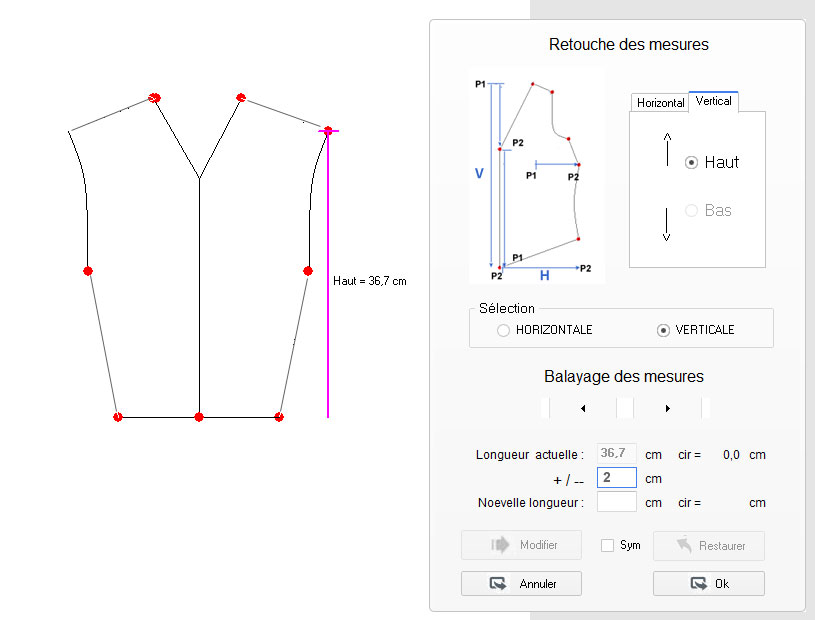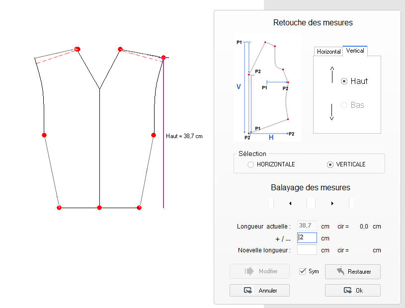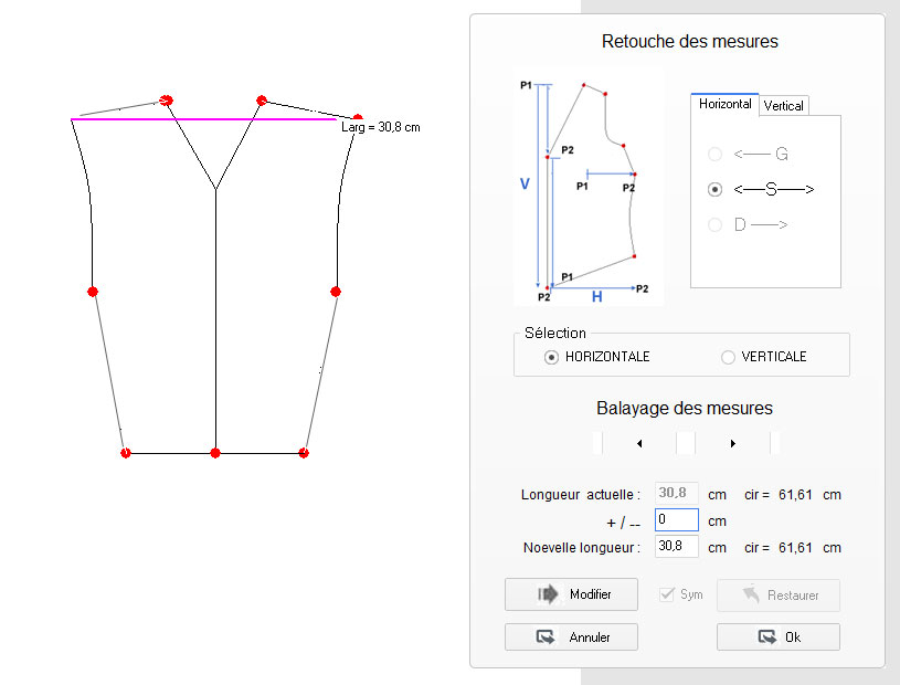 ajouts sur le tracé de base ou modification de ses mesures (largeur d’épaule,