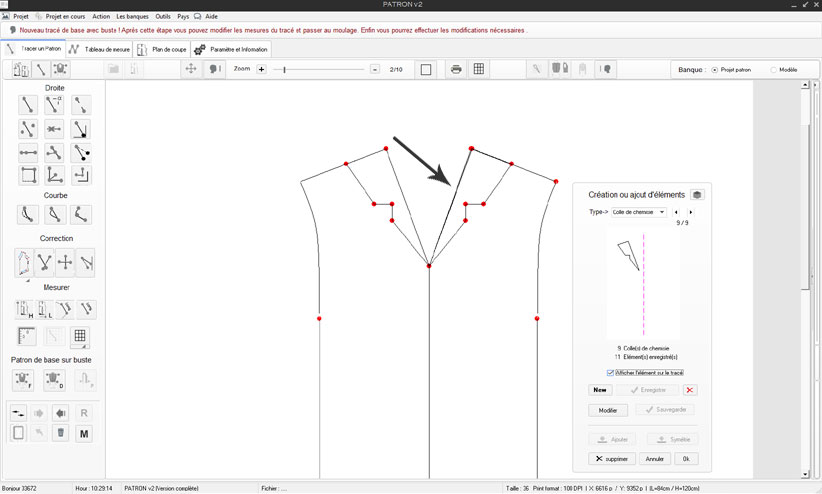 Ce tracé de base ici le chemisier, est créé