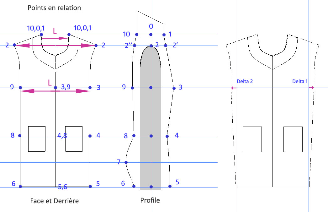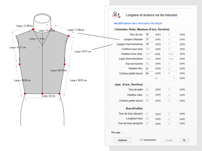 dos, largeur d’emmanchure, ligne taille etc..) s’effectue