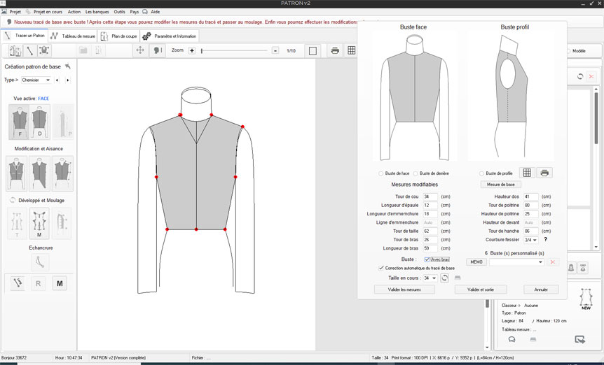 d’un buste jusqu’à impression du patron)