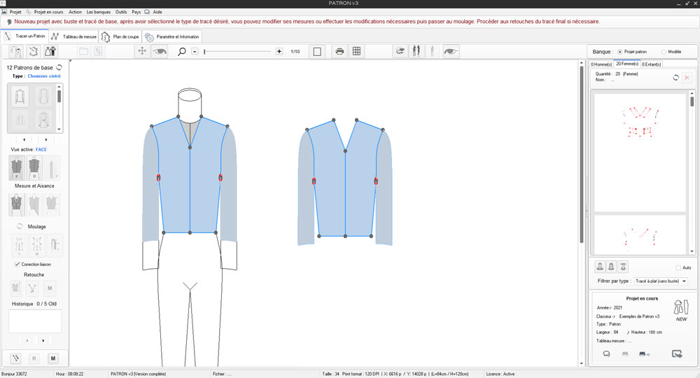 Toutes les vidéos  |  Présentation de PATRON v3  |   Utilisation d'un buste et d'un tracé de base