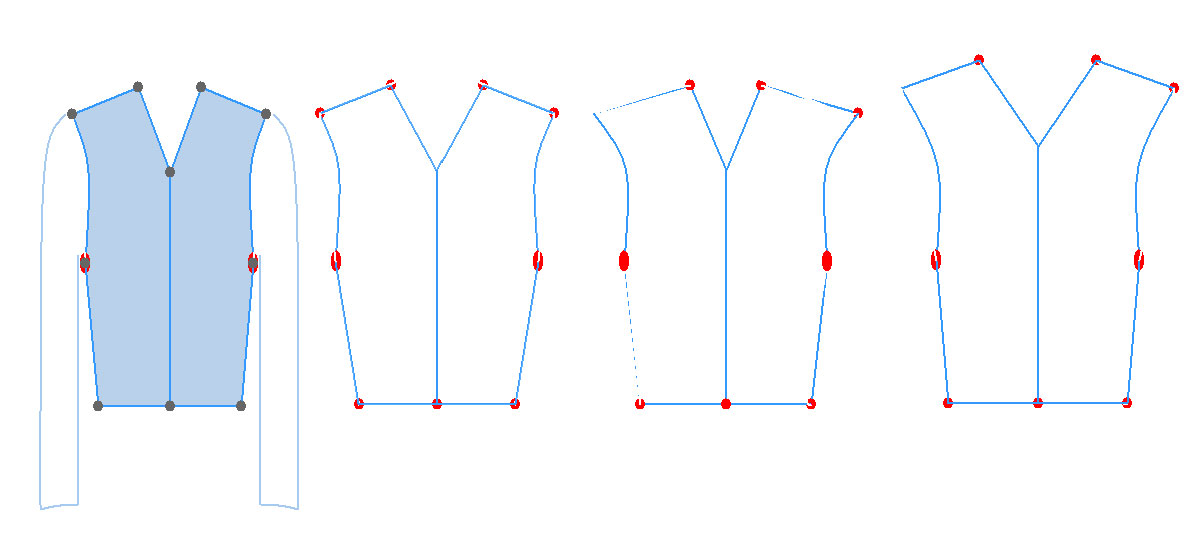 Deuxième retouche après moulage, la longueur d'emmanchure, la largeur du cou ainsi que la hauteur du Col de devant ont été modifiés.