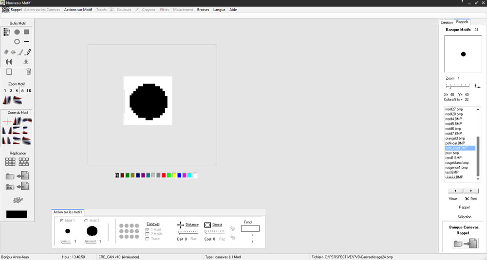 L’on peut créer plusieurs motifs personnels, les sauvegarder dans la banque des motifs puis les réutiliser pour créer des canevas de différent format au grés de l’utilisateur.