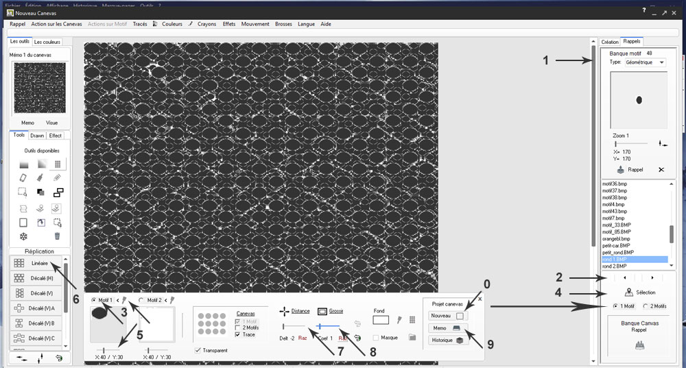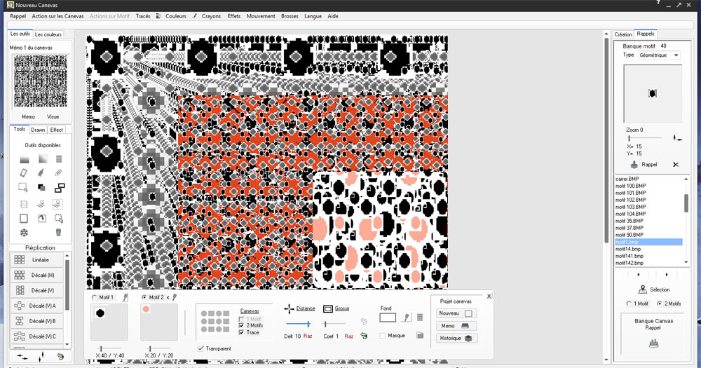 Ces motifs seront ensuite utilisés (1 ou 2 motifs à la fois) pour la création des réplications suivant le type sélectionné.