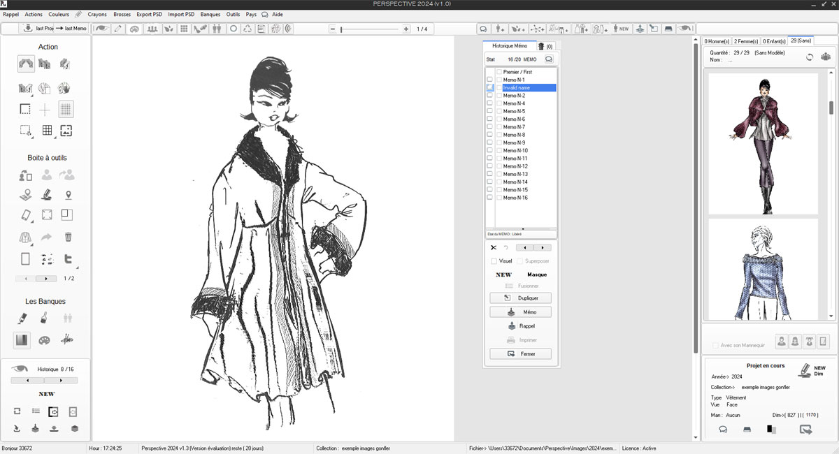 Perspective est un environnement de dessin 2D orienté mode, composé de plusieurs outils de création et de gestion des collections. Perspective est aussi composé de 6 banques personnelles à enrichir par l'utilisateur.