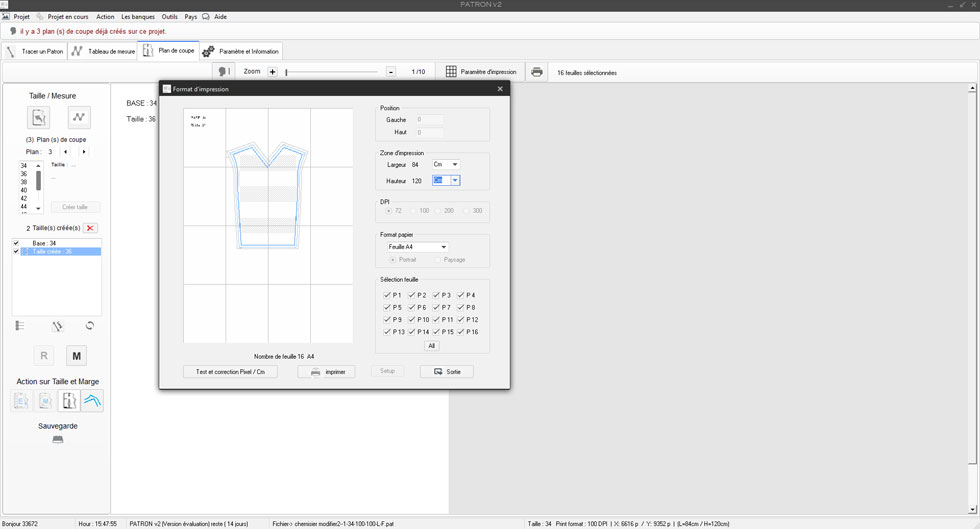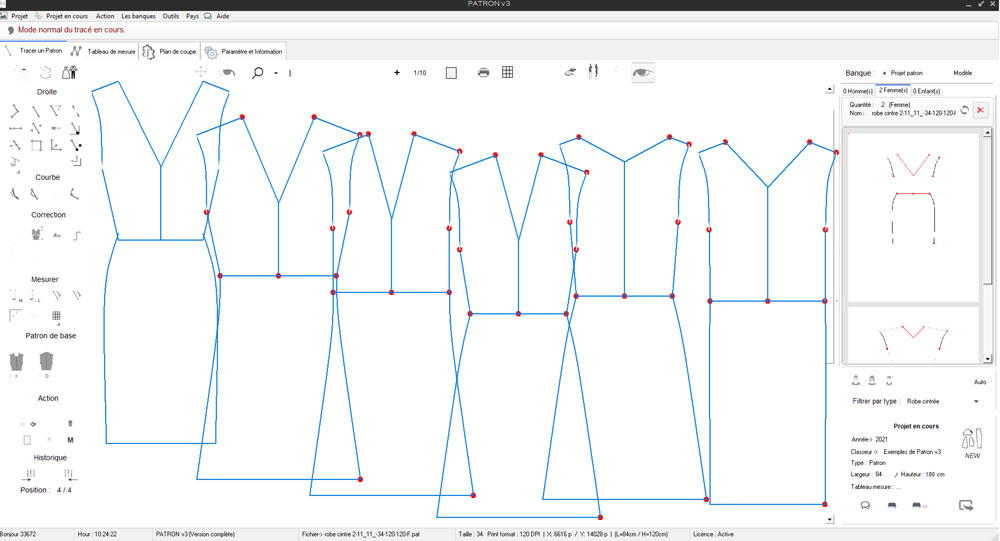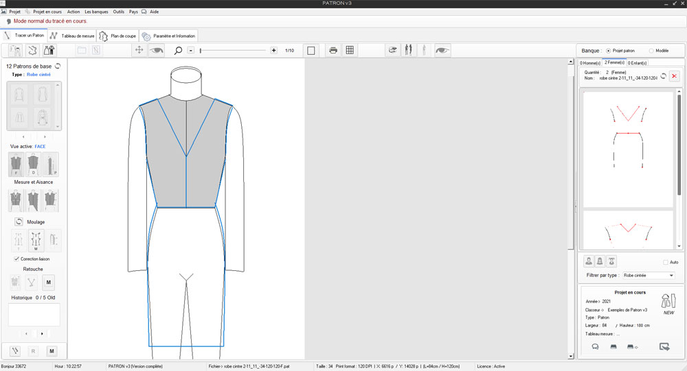 - Dessin de patron, trois modes : dessin à plat , importation de dessin au format A4 à redimensionner et dessin sur buste personnalisé.