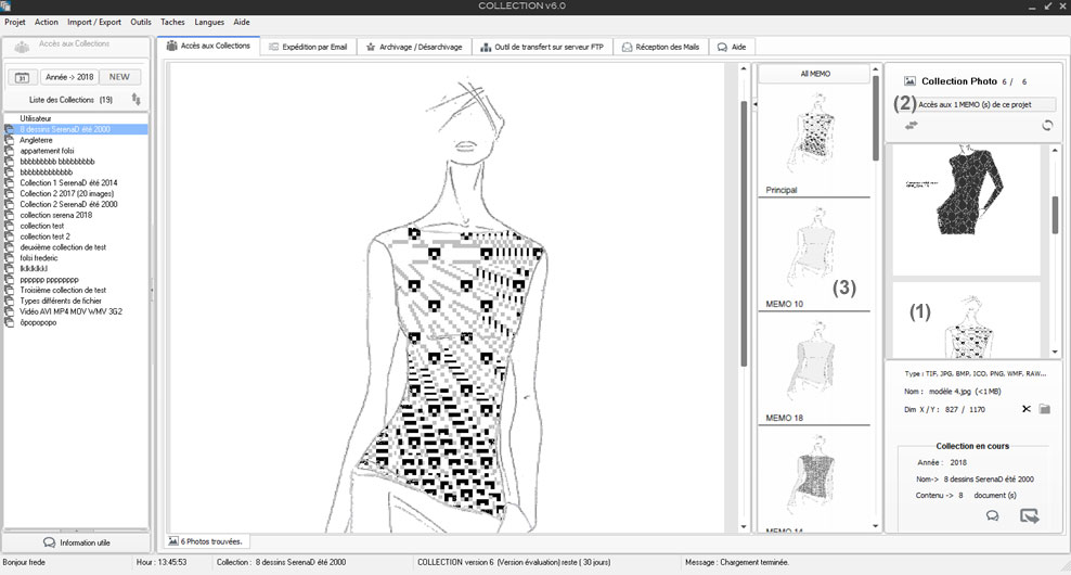 • Sélection d'une collection , 8 dessins SerenaD été 2000 (dans l'exemple ci-dessus)
