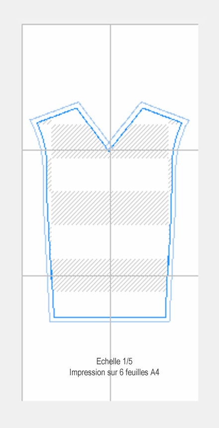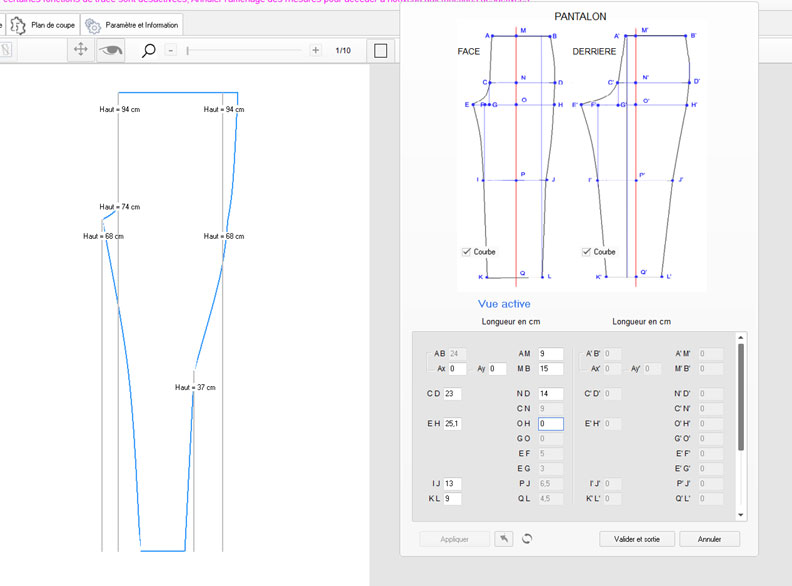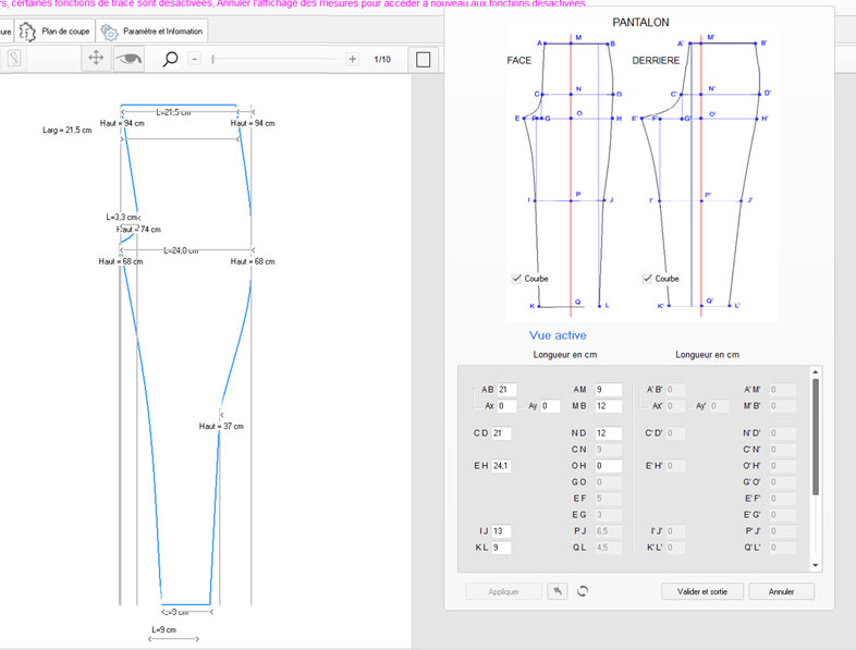 Après le retrait du buste, pour un mayeur visualisation du tracé on peut contrôler plus aisément la dimension des mesures (ici la longueur d’emmanchure).