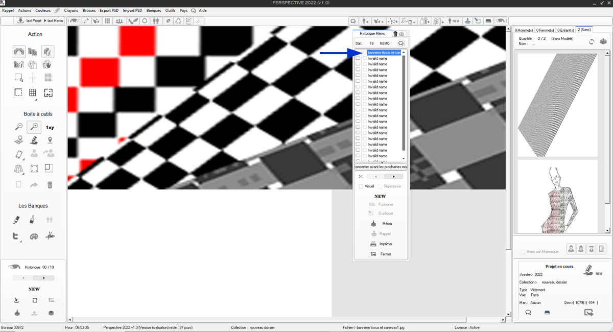 Une des nouvelles fonctions intégrées dans cette version est le rappel d'un projet avec ses mémos avec la possibilité de les visualiser pour consultation avant expédition ou pour impression.