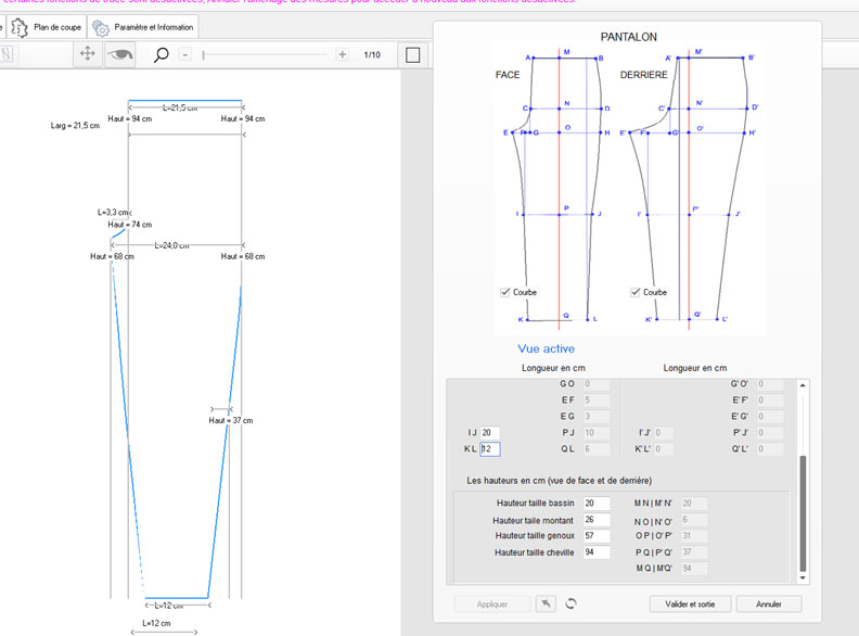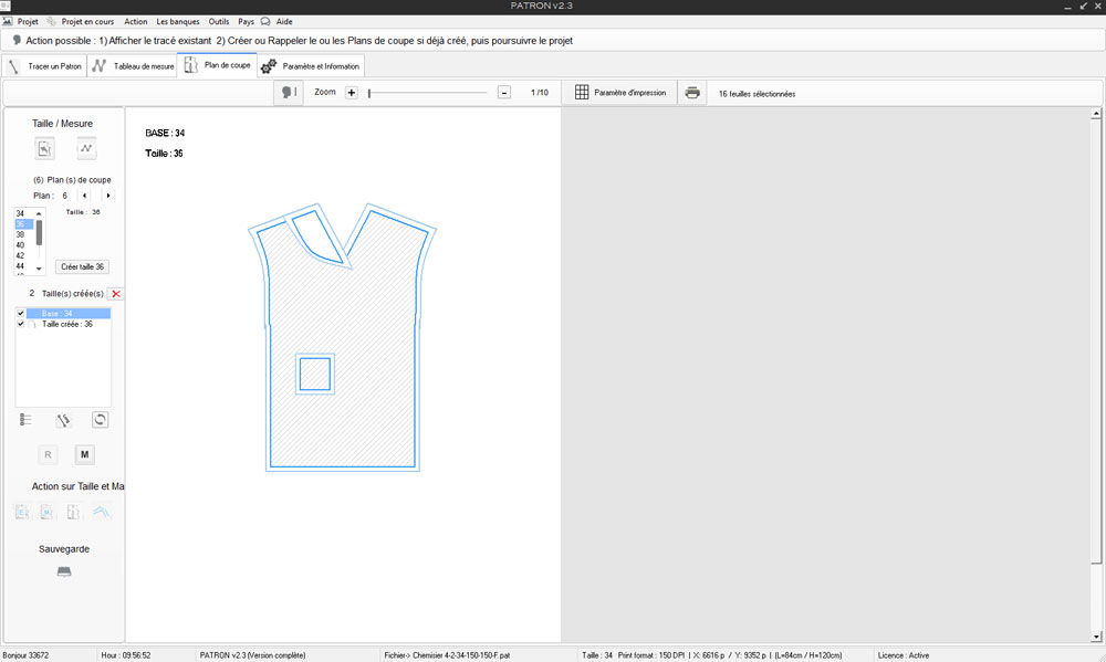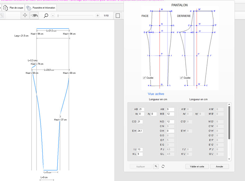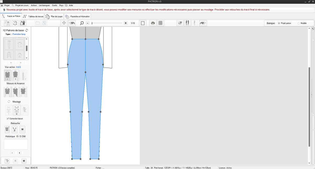 PATRON v2 : L'interface principal de l'outil de création de patron (à plat ou par importation de dessin au format A4).