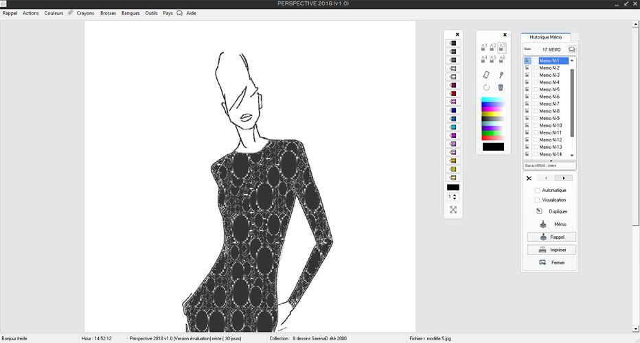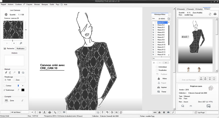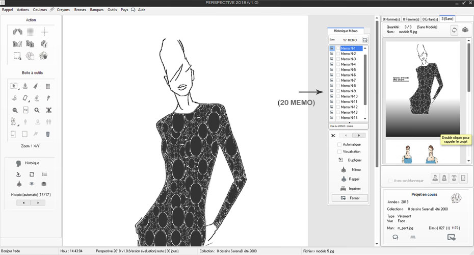 - L'utilisateur peut ainsi créer jusqu'à 20 modèles du même projet appelés MÉMO , sauvegardé automatiquement et rappelés à chaque réouverture pour consultation ou évolution des dessins en cours de création.